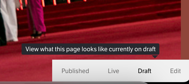 - Draft — View the currently drafted page as an admin on the client facing version of the website. This option will always be available.
