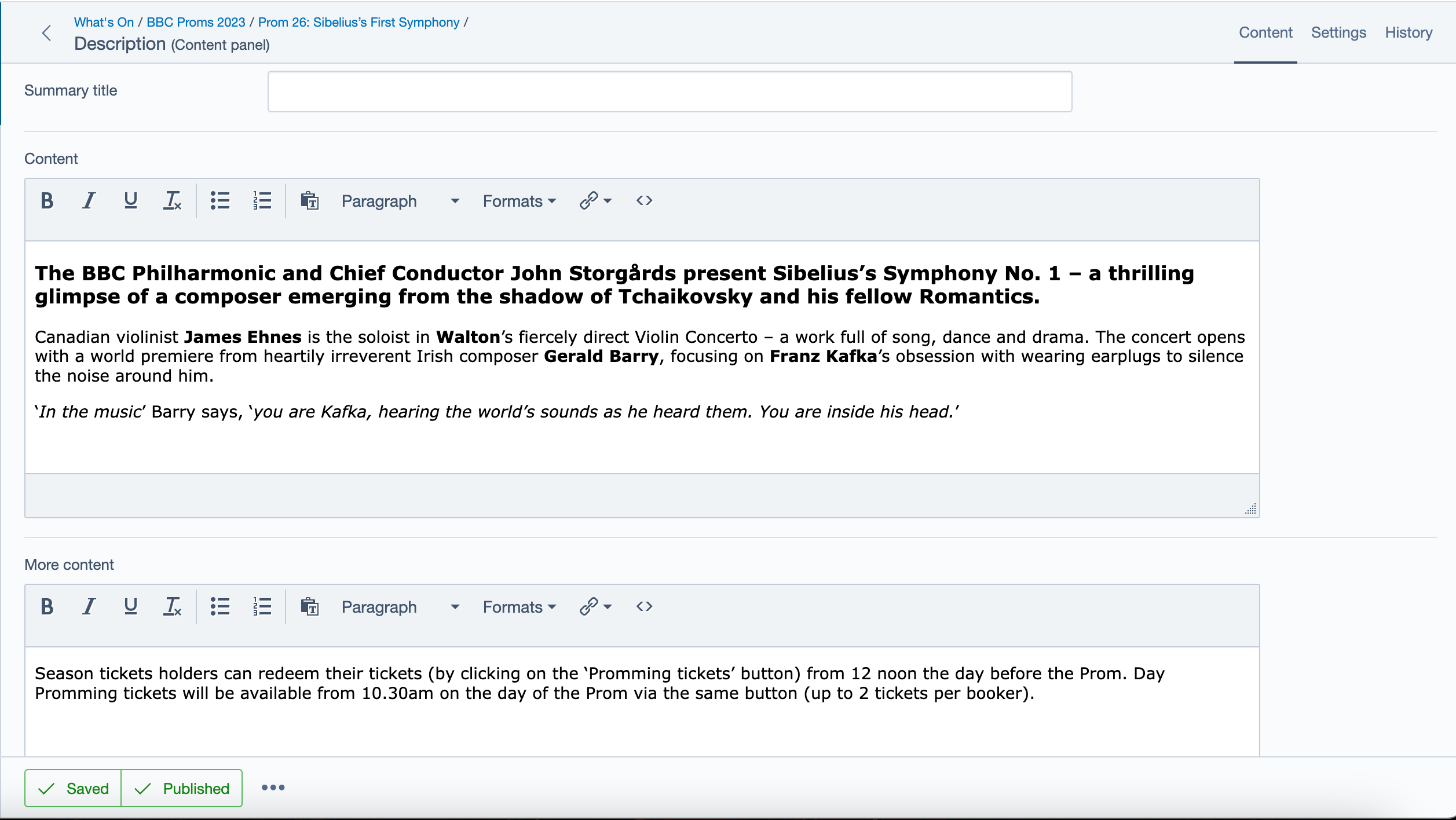 If you add text in the "More Content" section, it will appear hidden under a "read more" button.
